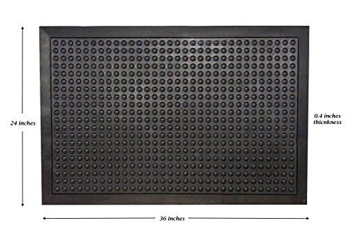 Non-slip design - made from recycled and natural, heavy-duty rubber that stays in place its bubble pattern creates superb traction and easy drainage of liquid and grease, making it a great addition to any kitchen, garage, or other high-traffic areas that need a strong, durable anti fatigue mat anti-fatigue mat - created with workers in mind, this comfortable and sturdy mat acts as a shock absorber against concrete or hardwood flooring. The thick rubber creates a cushion between your feet and the floor, helping to prevent muscle fatigue and helps relieve pressure off your feet perfect for indoor & outdoor use - the durable rubber material of this mat helps to withstand against inclement weather, heavy traffic, and other wear-and-tear. Great for use as a commercial mat in any area such as office floors, commercial establishments, bar floors, restaurant kitchens, gym floors or in garages, and it also helps avoid spreading of dirt in areas where many people will be walking. Easy-to-clean. THz textured design help to trap dirt and debris from shoes and work areas. Simply lift the mat and sweep or mop the mess away. Happy customers. Our first priority is the happiness of our customers, and we believe in creating and selling the highest quality of products. If for any reason you have any issue with your purchase, our customer service team will gladly take care of it.Feature