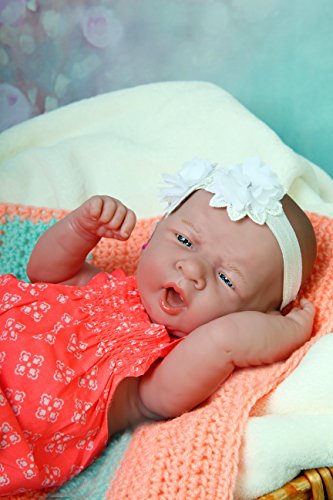 Sooo cuuute this angel ALL VINYL, reborn, 14 inch Berenguer La Newborn Preemie. She has the most radiant, natural skin tone... beautiful blue eyes that stare lovingly at you and amazingly detailed wrinkles that look and feel so real. Each body part is designed to show off the doll s realism from the tiny fingers and fingernails to its wrinkly toes a new baby "glow". Baby's nails have had their first manicure. This little one has been lightly weighted for a more realist feel Baby wears a "preemie" size in baby clothes.comes with matching flower headband(color may vary),The flowered doggie outfit she is wearing is no longer available and NOT Included). All items in photos included except for the blankets & teddy bear.Feature