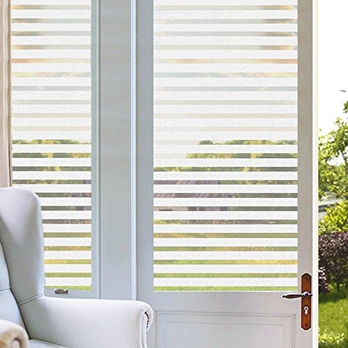 Zanbringe 17.7x78.7 Inches(45x200CM) Non-Adhesive Home & Office Semi-Privacy Bold Striped Static Cling Window Film