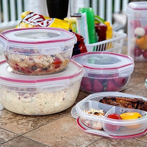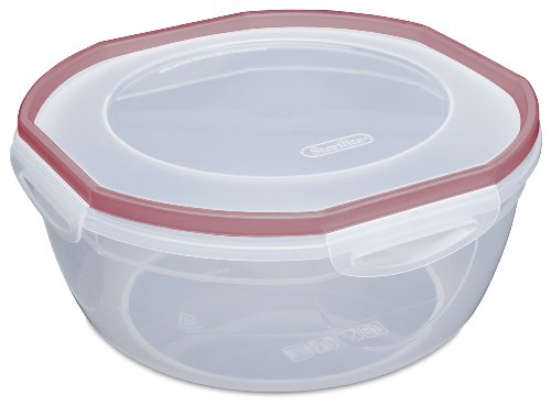 Sterilite 03948604 Ultra-Seal 4.7 Quart Bowl, Clear Lid & Base with Rocket Red Gasket, 4-Pack