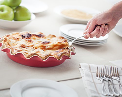 - High-fired ceramic pie plate with scratch-free glaze is decorative and durable; resists staining, odors and cracking