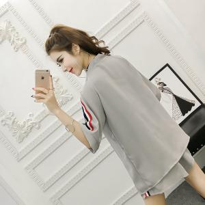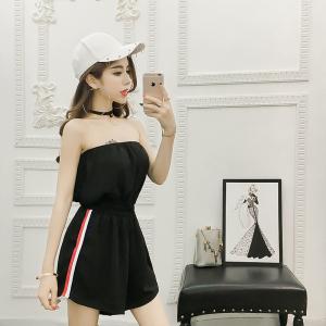 ベアロンパース 羽織り スポーティー ラインデザイン ショートパンツ ミニ丈ロンパース 大人可愛い トレンド