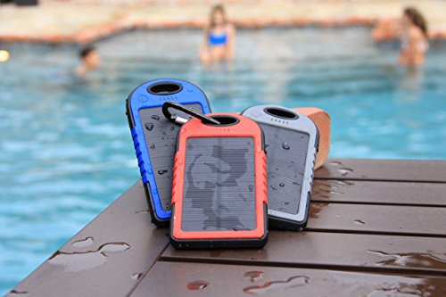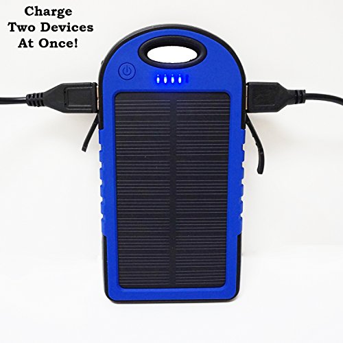 Audiobomb Solar Reflex Powered Dual Waterproof Portable Charger Charge Two Devices At Once, 5000mAh, Blue