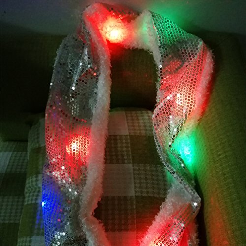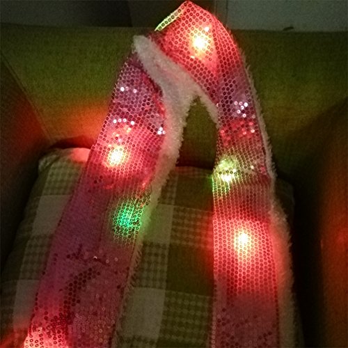 Specifications: Brand: Luwint Material: Cotton, Polyester Color: Red pink silver Size: 55.1' * 5.3' Battery type: 2 * CR2016 Package included: 1 * Luwint LED Sequence Flashing Scarf ( Batteries included ) 1 * Greeting Card 2 * CR2016 Batteries for Bonus