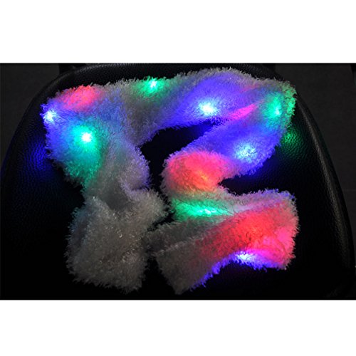 Perfect Party Accessories - especially ideal props for children's / friends birthday party, Halloween / Christmas party and Cosplay Costume Show. Multi-Occasions - Can be used at home, outdoor garden, dance halls, stage performances and other large entertainment venues. How To Use - The lights have different patterns and you can cycle through them with the switch that's hidden inside the scarf at one of the ends. The end that holds the battery case/control switch is closed with Velcro so you can access the switch easily. How to flash - you can change the light colors (blue green red) as you like, the lights can change from fast to slow to patterned How to change the batteries - Open the velcro on the inside of the scarf. Pull out the battery case. On the side where the on/off button is, there is a screw. Use a Phillips to remove it and then slide out the battery tray to change out.