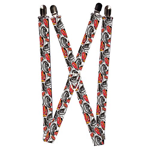 Studio : Buckle-Down Publisher : Buckle-Down Binding : Apparel Product Description These suspenders are a great way to make a fashion statement! They are stretchy nylon with stainless steel hardware, 1.0 inch wide, and adjust to fit most people. This product is Officially Licensed by Adventure Time and Made in USA by Cars 3 and Made in USA by Buckle-Down Inc. 0