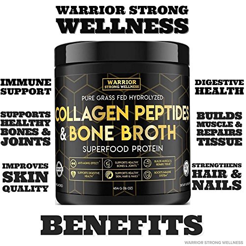 -. Title : Collagen Peptides & Bone Broth by Warrior Strong Wellness: Pure Grass-Fed Hydrolyzed Collagen Powder Boost for Healthy Skin, Nails, Hair, Joints & Muscles, No Gluten, Non-GMO Unflavored 16oz