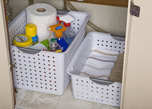 Sterilite 16288006 Deep Ultra Basket, White Basket w/ Titanium Inserts, 6-Pack