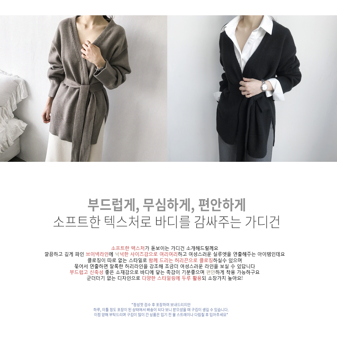 ※ 블랙컬러는 특성상 물빠짐이 있을수 있으니 꼭 ! 옷에 맞는 세탁법으로 세탁한 후 착용바랍니다.