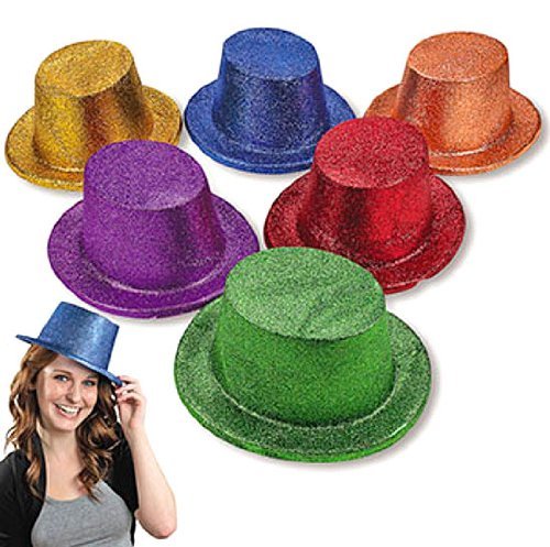 -. Title : Adult's Glitter Plastic Top Hats (1 dz)