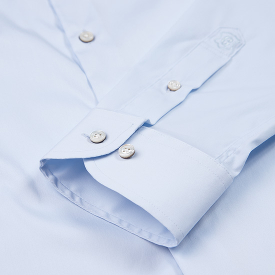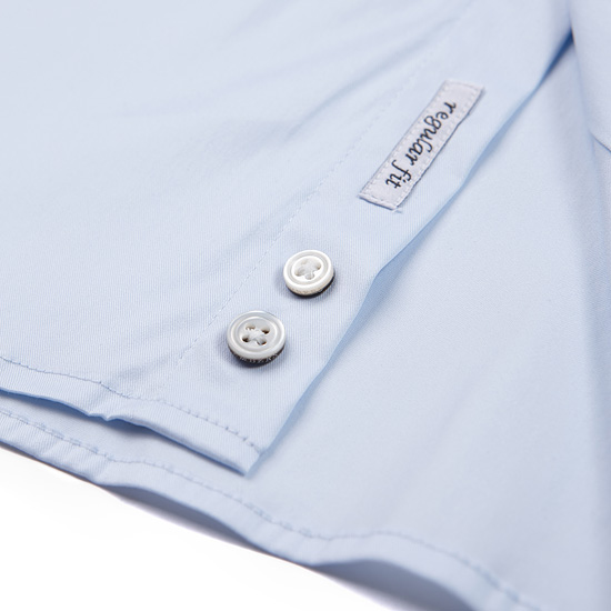 - 심플한 블루 컬러로 깔끔한 남성 드레스 셔츠.