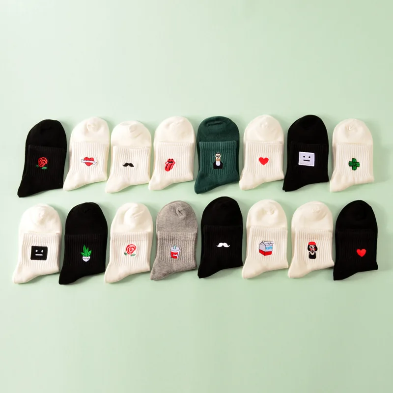 Size: EU=35-39 Seasons: Summer, Spring, Fall Pattern: milk, Potted plants, heart, Beard, rose, radio,tongue, Style: Kawaii socks