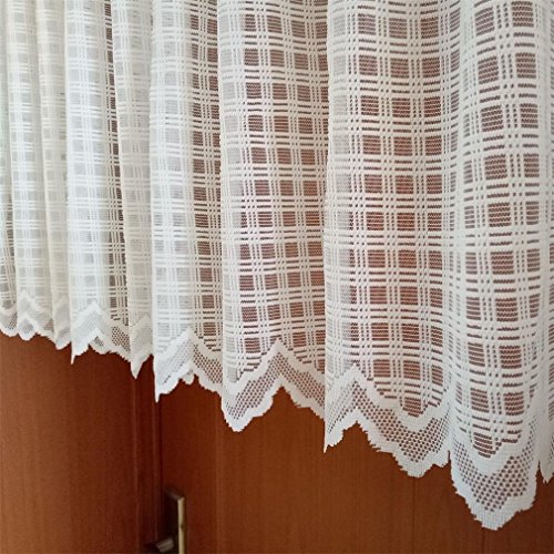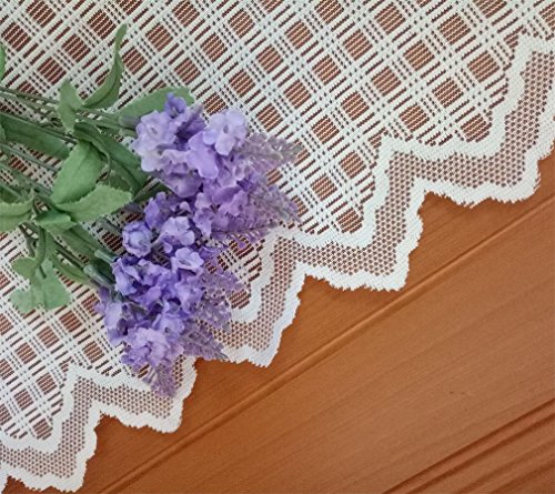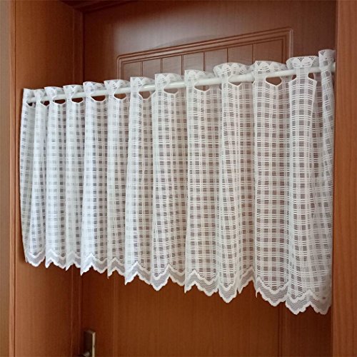 ZHH Lace Window Valance Sheer White Square Lattice Cafe Curtain 17-Inch by 59-Inch