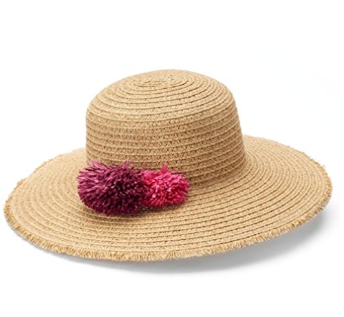 Sonoma Good For Life Womens Packable Pom Pom Straw Gardening Fishing Sun Hat