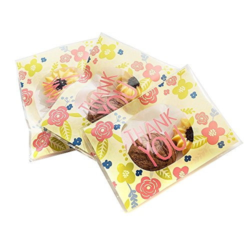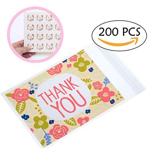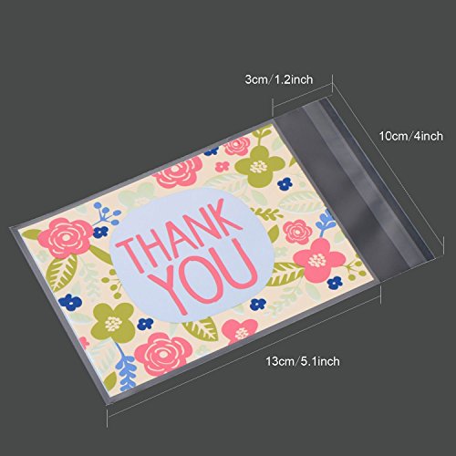 ❤️Special design - flower and thank you patterns printed on the bags, beautiful and special; Easy and convenient: each treat bag contains a widened adhesive sealing strip, can seal tightly