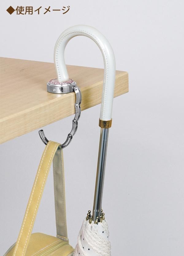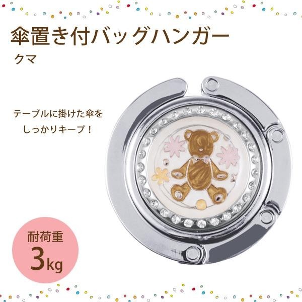クマの柄がかわいいバッグハンガーです。さらにテーブルに掛けた傘が滑り落ちないようにしっかりキープ出来ます。