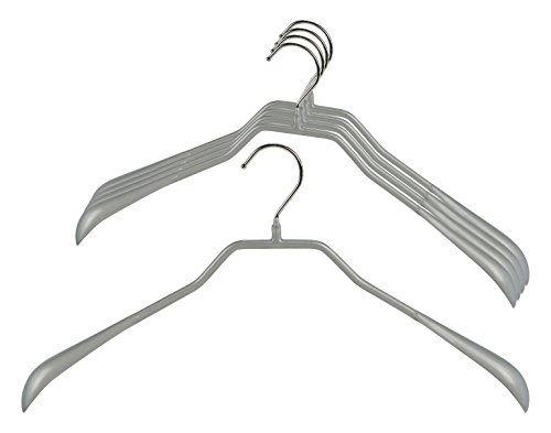Mawa by Reston Lloyd BodyForm Series Non-Slip Space-Saving Extra Wide Clothes Hanger For Jackets, Suits & Coats, Style 46/L , Set of 5, Silver