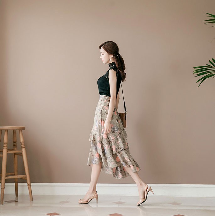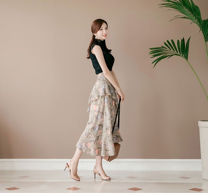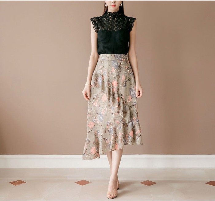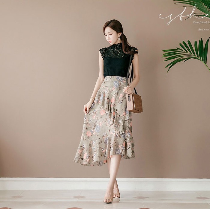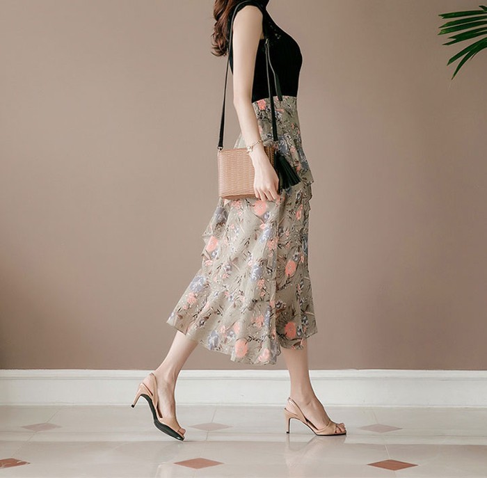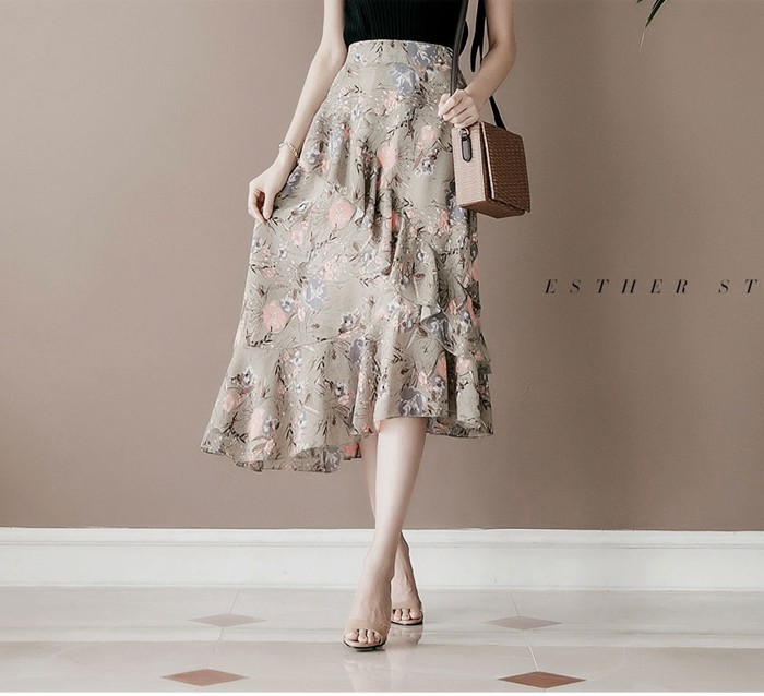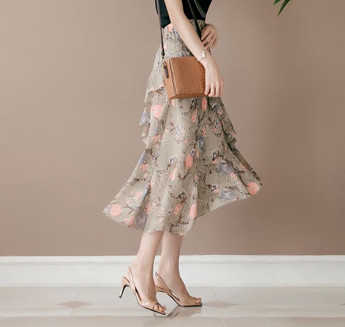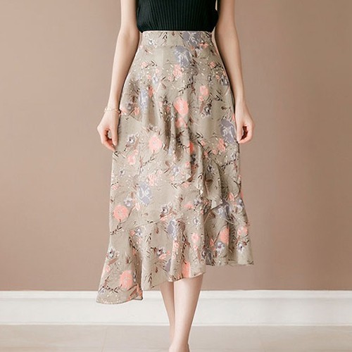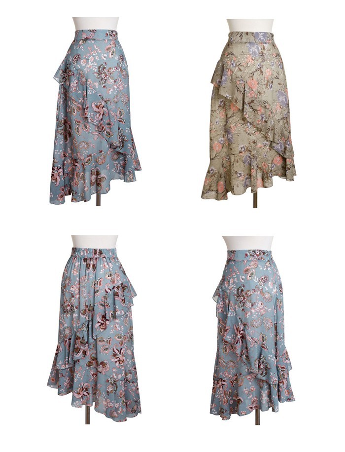商品名:スカート ハイウエスト 花柄 フラワー ロング丈