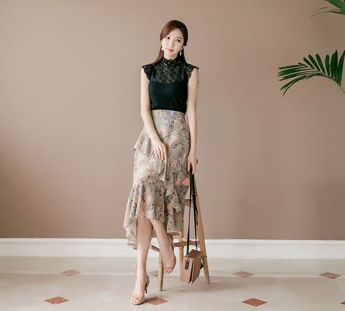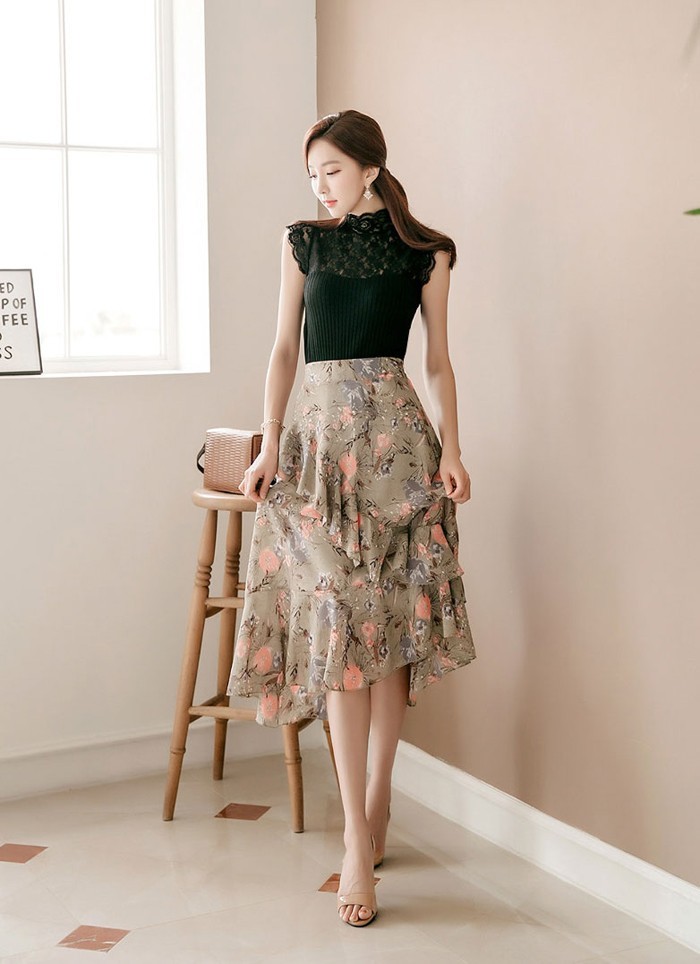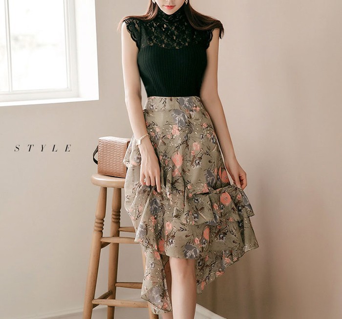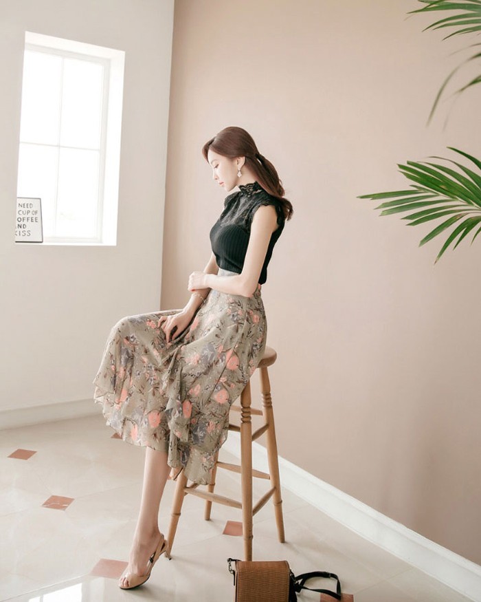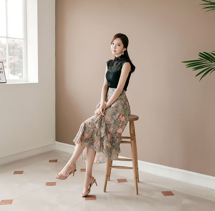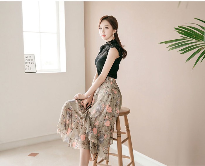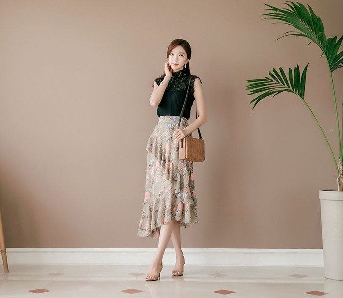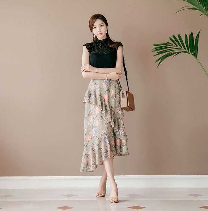 商品名:スカート ハイウエスト 花柄 フラワー ロング丈