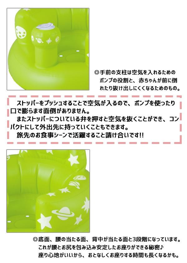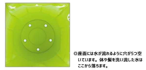 お部屋でもお風呂でも使える厚手のビニール製イスです。深くお座りできて抜け出しにくく、また座り心地もいいのでパパやママが自分の体を洗っている間も待たせておくことができます。底面には大きな滑り止めがついていて滑りにくいです。また座面には排水用の穴が5つあるので、洗い流したシャンプーや水は穴から流れていきます。 |