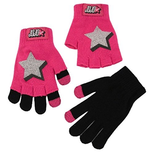 Product DescriptionJoJo Siwa 2-in-1 Gloves are two layers to wear with or without fingertips. They have two fingertips with special coating that allows you to use your phone or other touch tech without taking off her gloves.0