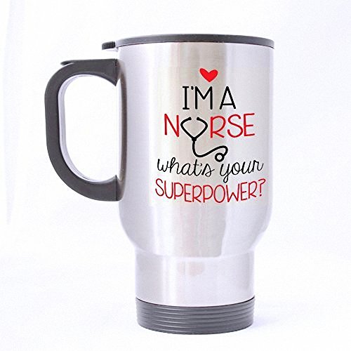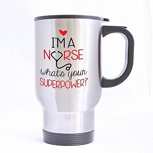 14 Ounce Funny Novelty Funny Nurse Quotes Mug, I'm A Nurse What's Your Super Power (Sliver) Mug Stainless Steel Travel Mugs - Great Gift Mugs