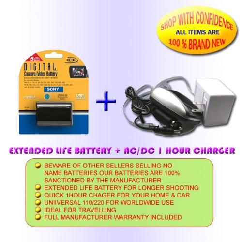 BATTERY 1HR CHARGER FOR SONY HC36 HC96 HC46 HC65 HC85 DCR-DVD305 DCR-DVD405 DCR-DVD205 DCR-DVD105 NP-FP71