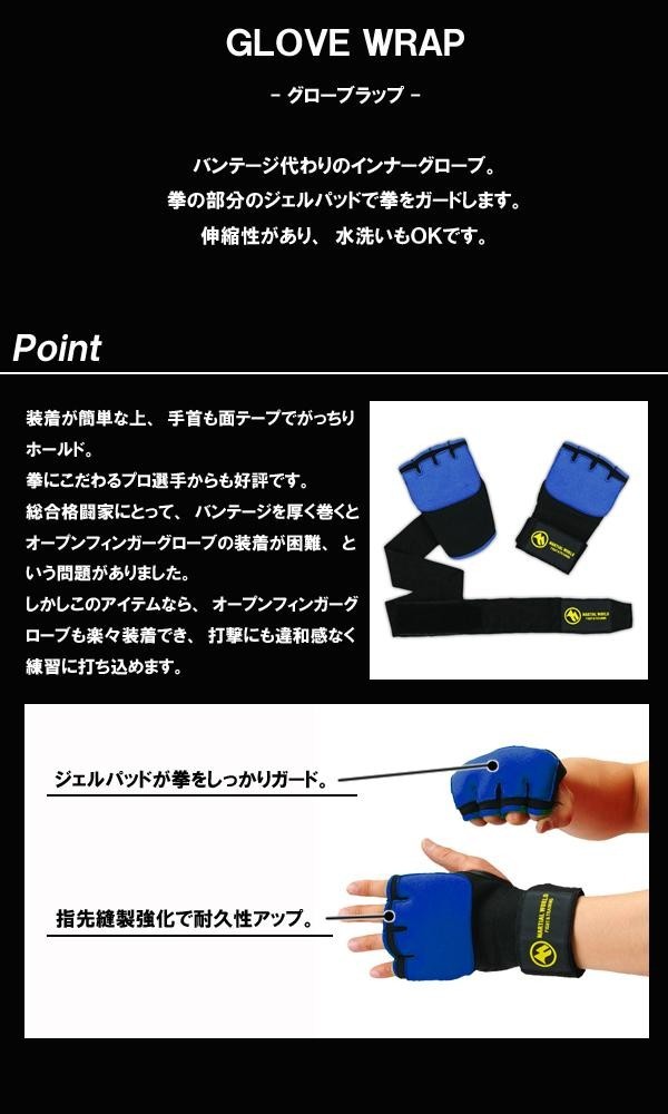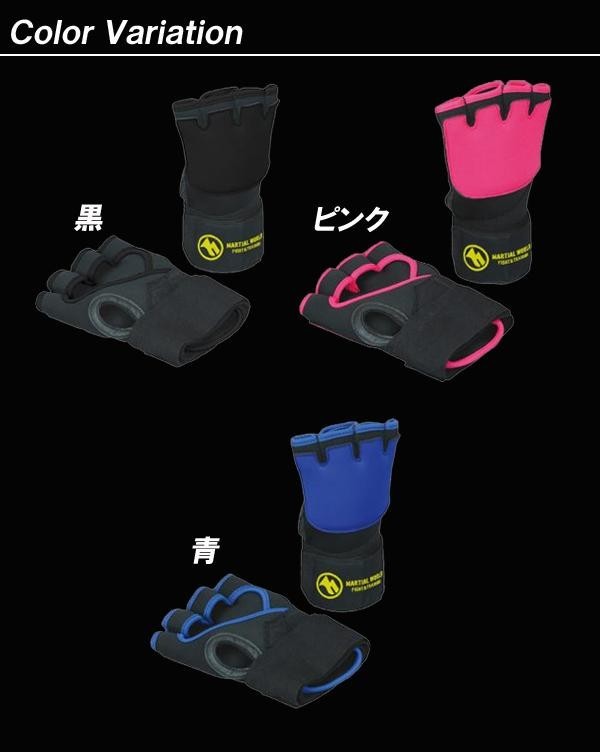バンテージ代わりのインナーグローブ。拳の部分のジェルパッドで拳をガードします。伸縮性があり、水洗いもOKです。