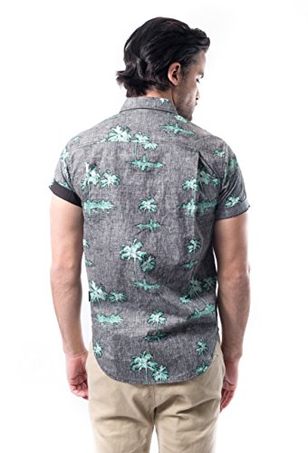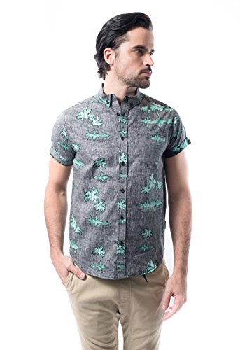 Brooklyn Athletics Men's Vintage Front Pocket Aloha Hawaiian Shirt, Black Palm, Medium