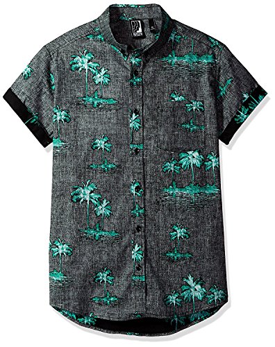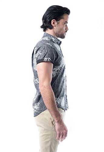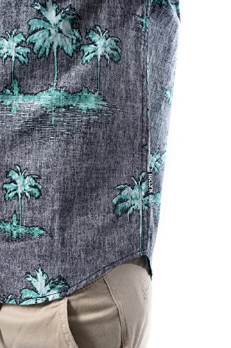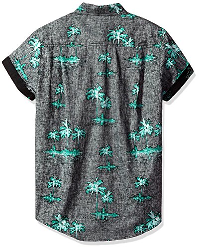 Brooklyn Athletics Men's Vintage Front Pocket Aloha Hawaiian Shirt, Black Palm, X-Large