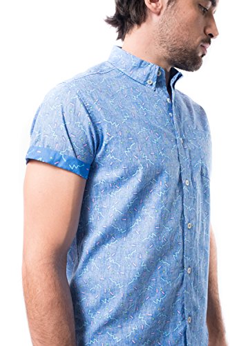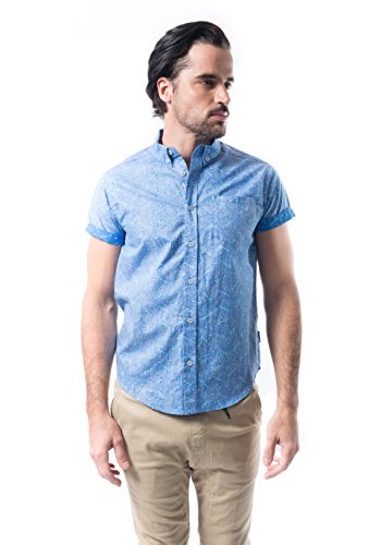Brooklyn Athletics Men's Vintage Front Pocket Aloha Hawaiian Shirt, Blue Pattern, Small