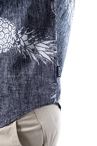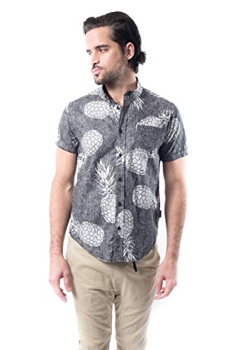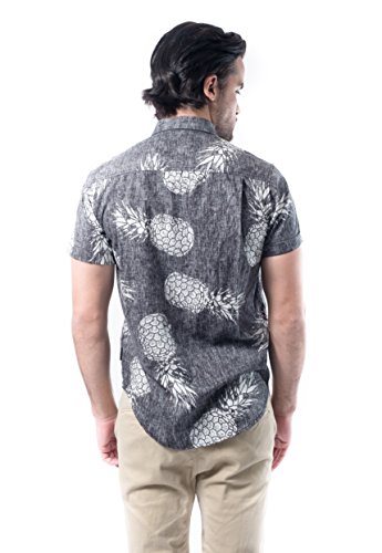 Brooklyn Athletics Men's Vintage Front Pocket Aloha Hawaiian Shirt, Black Pineapple, Medium