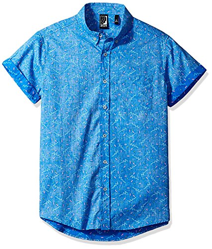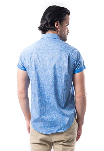 Brooklyn Athletics Men's Vintage Front Pocket Aloha Hawaiian Shirt, Blue Pattern, Large