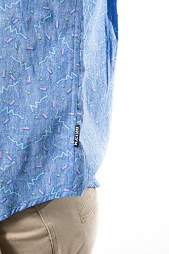 Brooklyn Athletics Men's Vintage Front Pocket Aloha Hawaiian Shirt, Blue Pattern, X-Large