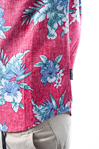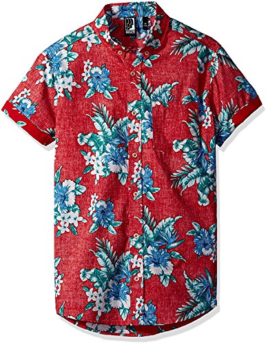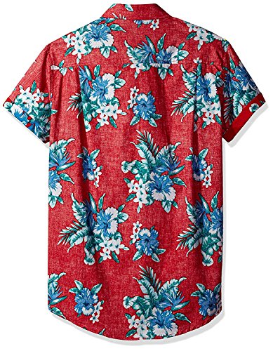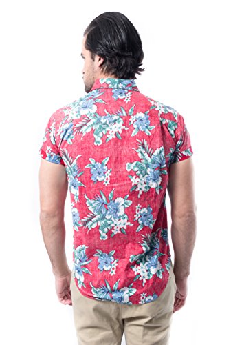 Brooklyn Athletics Men's Vintage Front Pocket Aloha Hawaiian Shirt, Red Floral, 2X-Large
