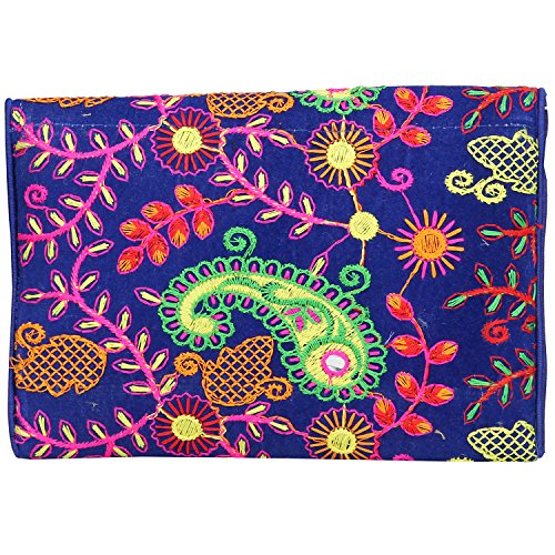 (Aaditri International)/Accessories/Handbags/DIRECT FROM USA/Maatangi Paisley Pattern Evening Clutch, Perfect Size of (9 x 6 Inches), Blue Color, Floral Emb...