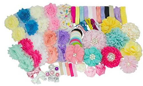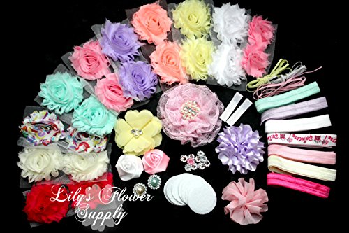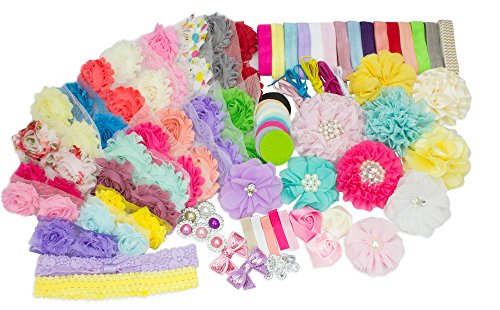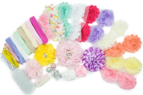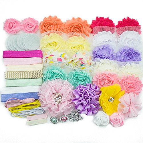 This DIY Headband Kit is Full of Quality Party Supplies and Has BEEN LOVED By Anyone Who Has Ever Used It As Their Baby Shower Games Activity: A fully customized supplies kit, crafted to fit all your needs - comprise only of the highest quality materials! Contains: 20 Shabby Flowers, 10 Felt Circles, 10 Yards of Foldover Elastic (Each Yard Makes 2 Headbands) 4 Large Flowers. 2 Mini Rolled Rosettes. 2 Lined Clips. 2 Rhinestone Buttons, 10 Mini Acrylic Buttons. All of the Baby Shower Kits Come With Instructions.
