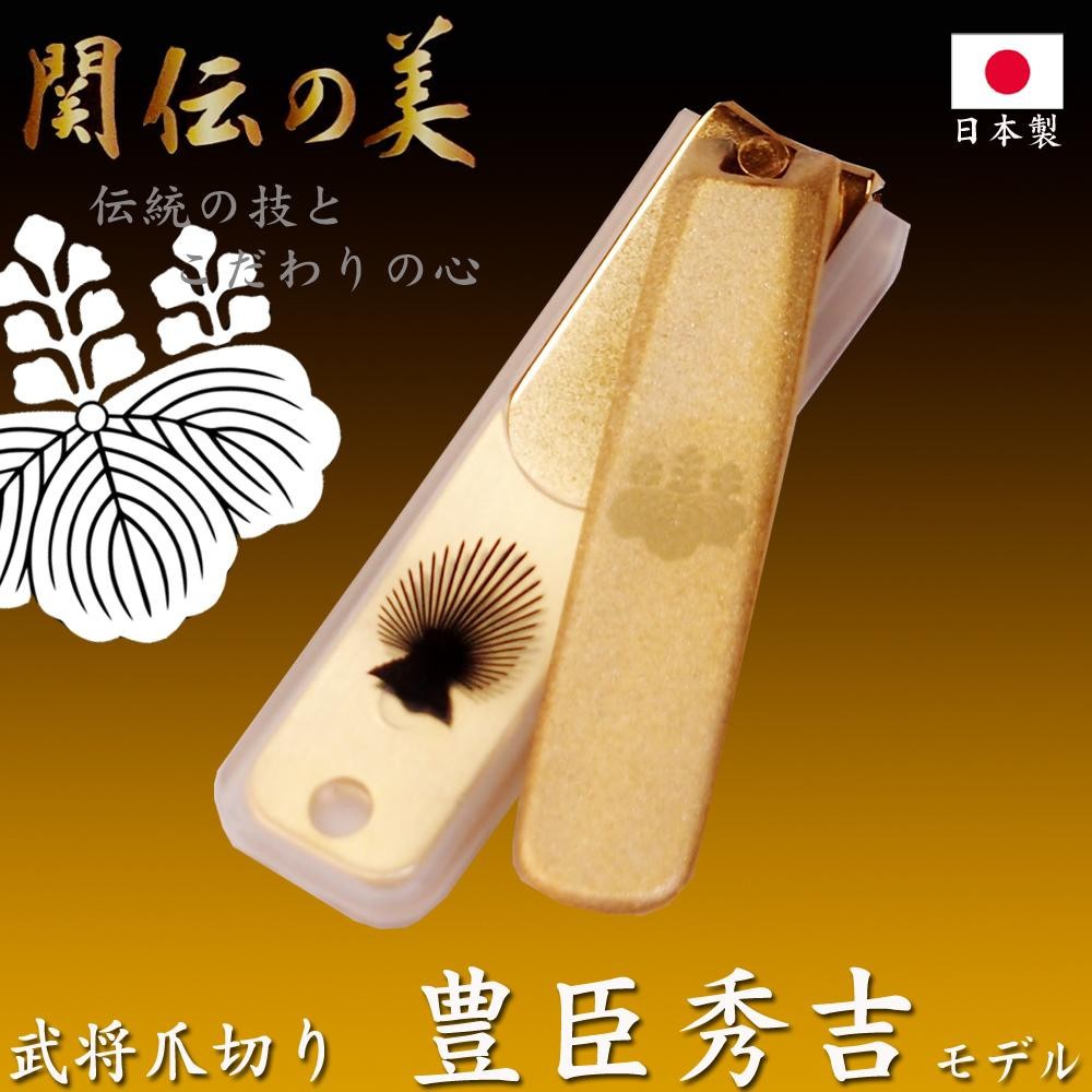 | 刃物の町・岐阜県関市の職人が一本一本丁寧に加工した、切れ味抜群の爪切り。材質がステンレスではなく、鉄であるため、切り心地も抜群!!豊臣家の象徴である桐紋に加え、テコの裏には、天に昇る朝日を表した秀吉の兜をあしらい、高級感漂う逸品となっております。 |