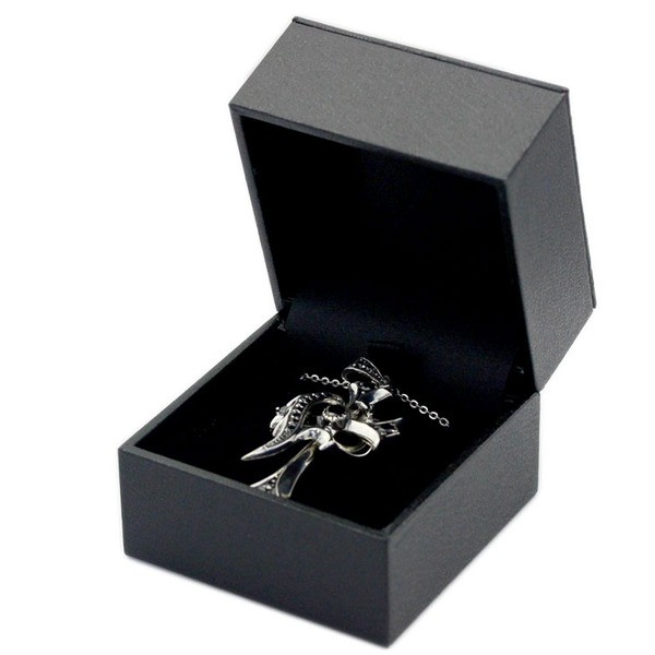 正義の十字架Royal Jokerジャスティスクロスペンダント。大振りでハードなデザインのクロスはバチカン部分にもブラックCZ(キュービックジルコニア)が散りばめられ、随所にブラックCZをふんだんに使用しゴージャスな仕上がりになっています。シルバーの重厚感がありハードに決めたいときにピッタリのアイテムです。本物のシルバーだから出せる質感が堪能できるアイテムです。専用のケースが無料で付属するので、プレゼント・ギフトにとってもオススメです。