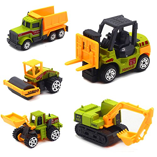 -. Feature : 5 Pcs mini construction vehicles includes: 1 dump truck, 1 bulldozer, 1 excavator, 1 forklift, 1 road roller cars. / High quality: the main part of this toy set is made of die-casting metal and the other part is made of plastic. / This toy set is made by realistic details which will bring much fun to your kid and encourage their imagination. / Cool to play: Joints of construction vehicles can swing. / Mini car that has suitable size for your kid's hand, he can take with it everyday.