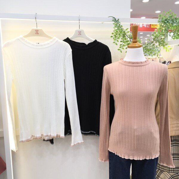 잔프릴이 사랑스러운 기본 티셔츠입니다:)목, 팔소매, 밑단에 자잘한 프릴을 주어 고급스러운 느낌을 주면서 편안하게 착용할 수 있답니다. 슬림한 두께로 아우터가 필요한 계절에 활용하시기 좋아요^^