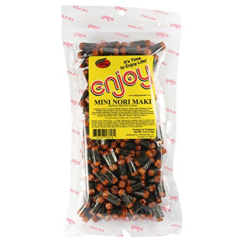 -. Binding : Misc. -. Brand : Enjoy Hawaii Snacks -. EAN : 0679757168181 -. Feature : Great for Snacking / Mini Nori from Enjoy Hawaii Snacks / 4 oz. bag -. IsAdultProduct : 0 -. Label : Enjoy Hawaii Snacks -. Manufacturer : Enjoy Hawaii Snacks -. PackageQuantity : 1 -. ProductGroup : Grocery -. ProductTypeName : GROCERY -. Publisher : Enjoy Hawaii Snacks -. Studio : Enjoy Hawaii Snacks -. Title : Enjoy Hawaii Mini Nori Maki -. UPC : 679757168181