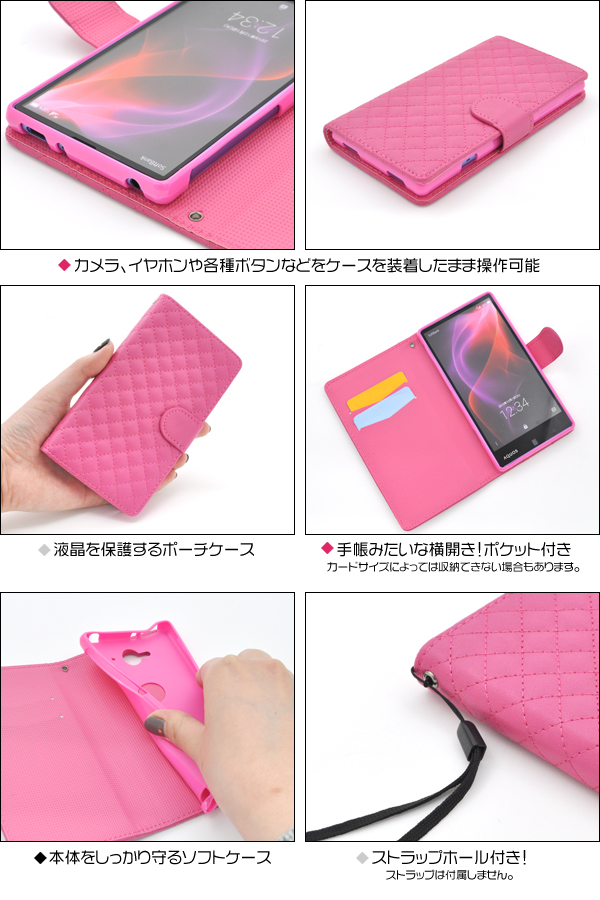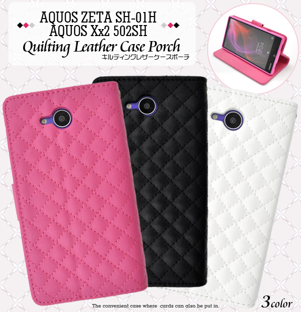 触り心地抜群のキルティングレザーを使用したオシャレなケースポーチです。 内部に備えられたソフトケースでしっかり固定し、 衝撃やキズ、埃などからAQUOS ZETA SH-01H/AQUOS Xx2 502SHをしっかりと守ります。