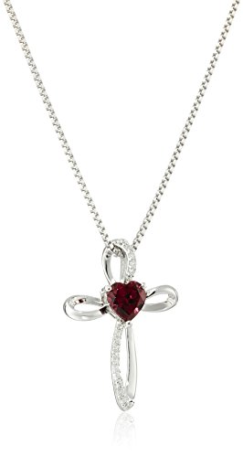 -. Title : Sterling Silver Cross with Rhodolite Garnet Heart Shaped Center Diamond Pendant Necklace, 18"