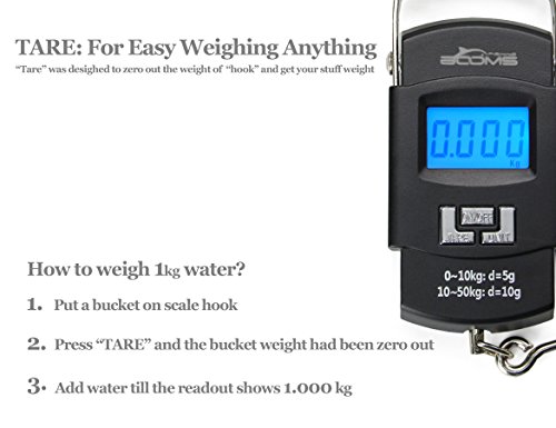 Studio : Booms Fishing Publisher : Booms Fishing Binding : Office Product Product Description Booms C1 Digital Luggage/Fishing Scale: For Handy Weighing! ??Get Your Stuff Weighed At Anytime Anywhere, Accurately Easily! ????:( Ready to check-in but the luggage is overweight so you have to pay extra fees or reduce the weight awkwardly in public? ????:( Got a big fish and wanted to show off to your friends but not knowing its weight? ????:( Wanted to weigh your cumbersome package but have to move it frequently? ??This 'Booms C1 Digital Luggage/Fishing Scale' Would Help You Out! :) ???? Handy Compact ????Booms C1 Digital Scale was designed for one-hand operation on the consideration of the situation that request for a portable and compact scale. ???? Tare: For Easy Hooking ????'Tare' would give you extra "hook" for weighing something unhooked. Allows you to 're-zero' the scale for weighing items independently of the container they're in. ???? Lock: For Easy Reading ????The feature function 'Lock' will freeze the peak readout when your holding is stable, for easy reading. Also here are 4 units available: KG, OZ, JIN, LB. ???? Heavy Duty ????Built by high quality ABS plastic with a rough stainless steel hook, and its loading strength covers up to 110lb, as a gripping scale it is far more than your usual need. Key Factors: ??- Material: ABS Plastic Body Stainless Steel Hook ??- Color: See Above ??- Weight: 112g ??- Size: 4.5*2.6*0.6 in What's in the box: ??1* C1 Digital Scale ??1* Manual