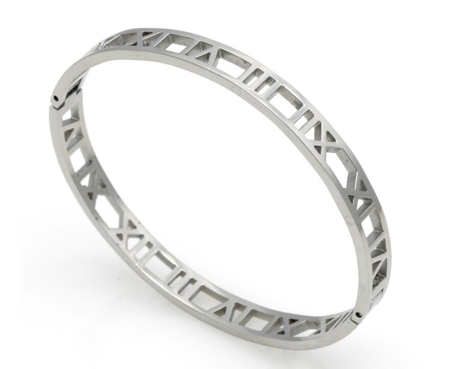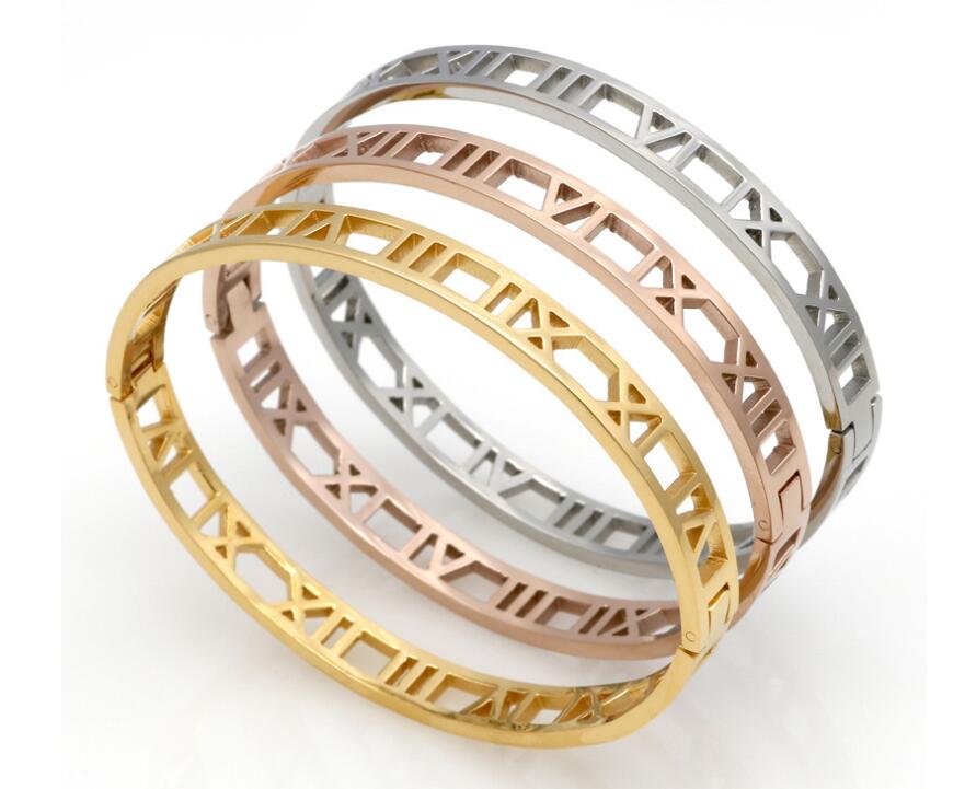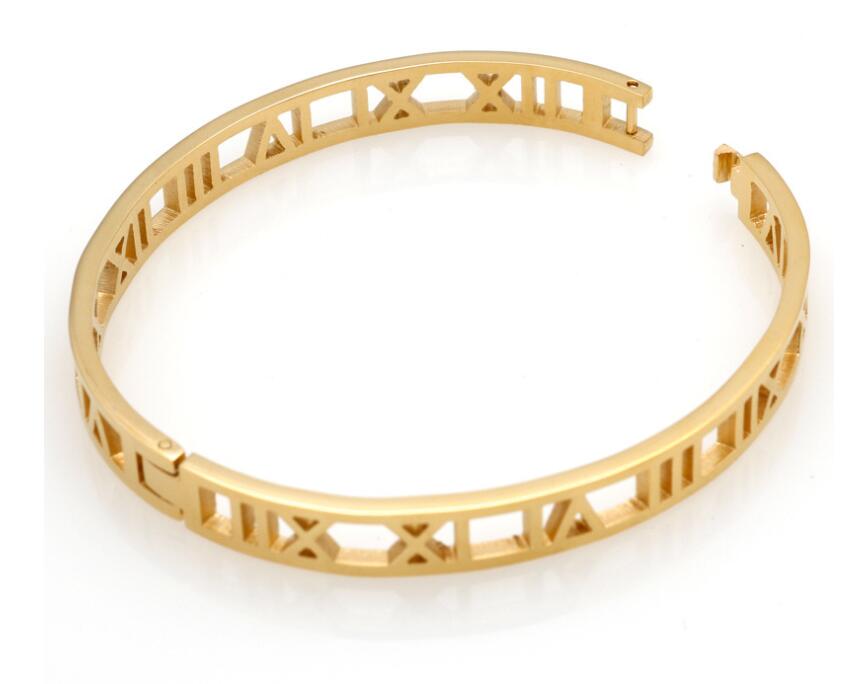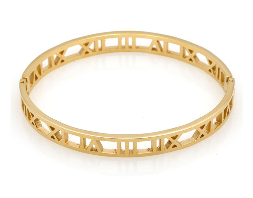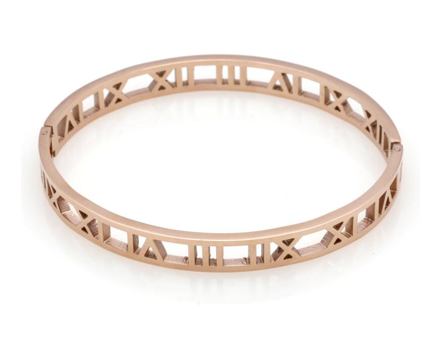 Fashion Women Jewelry Titanium Bangle 18K Gold Rose Hollow Roman letter Bracelet Bangleu0026nbsp;