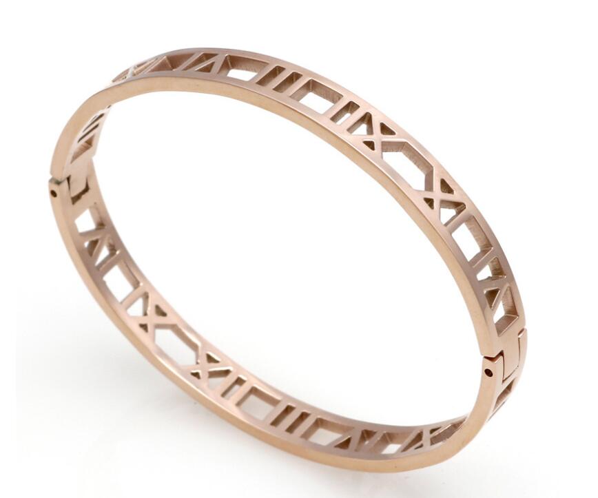 时尚钛钢镀18K玫瑰金缕空罗马字母女式手镯
