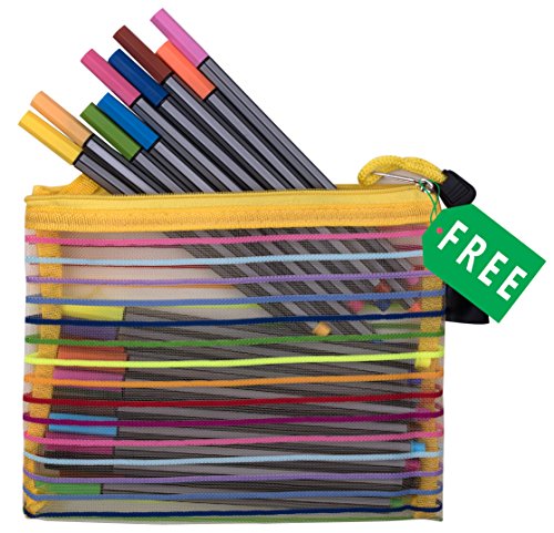 Corla Art Fineliner Color Pen Set, 0.4mm Colored Fine Liner Sketch Drawing Pens with Mesh Carrying Case for Coloring Books and Art Projects (24 Colors)
