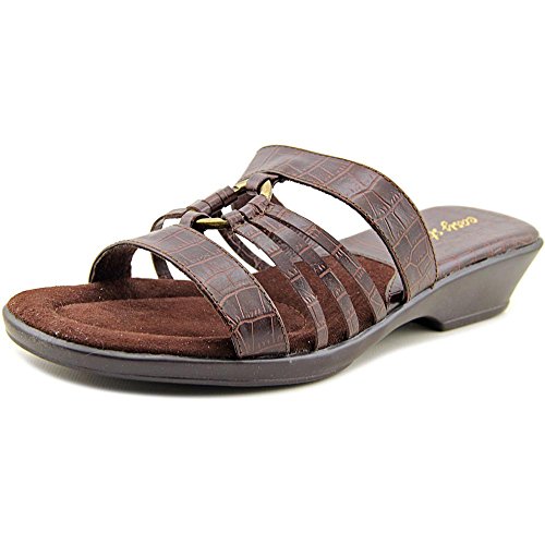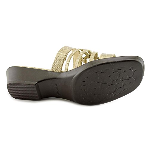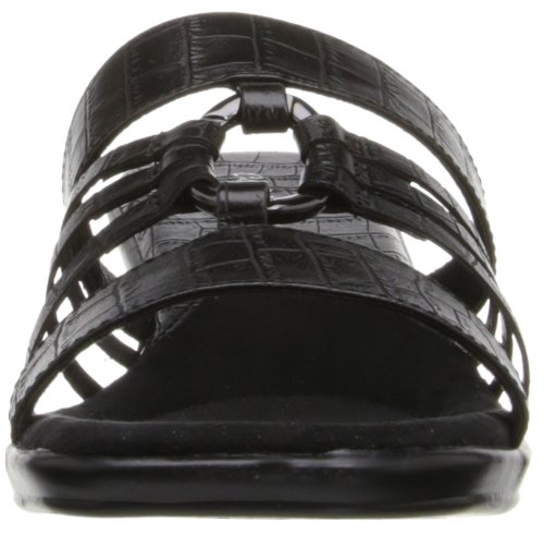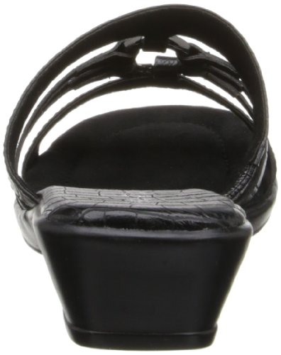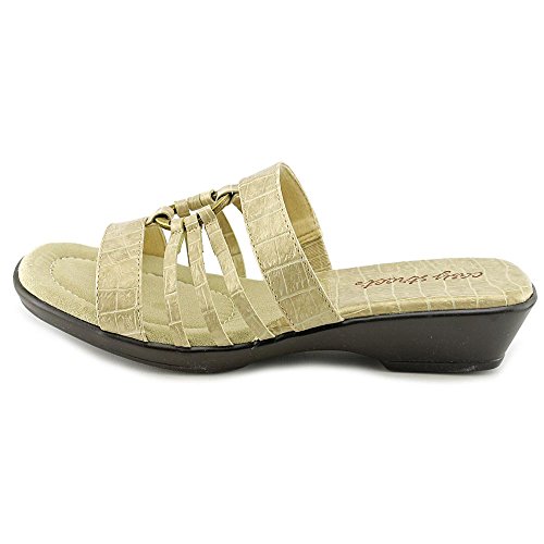 Product DescriptionA metal harness ornament ties together the slender straps of this lovely sandal from Easy Street.0