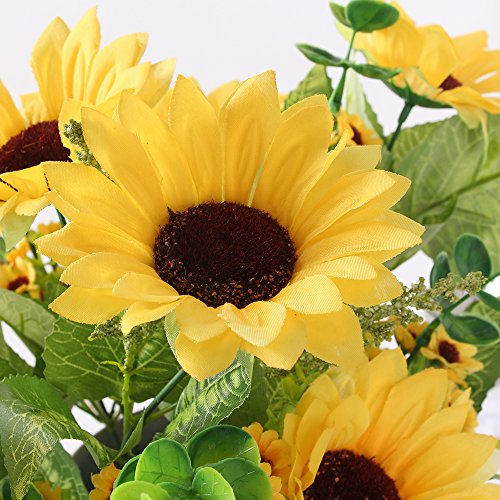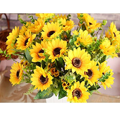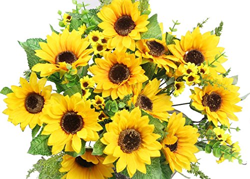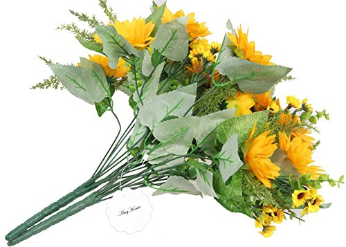 AmyHomie Artificial Sunflower Bouquet, 7 Flowers Per Bunch, 2 Bunches Per Pack